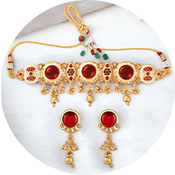 Gold plated Double Line Kundan Necklace Set