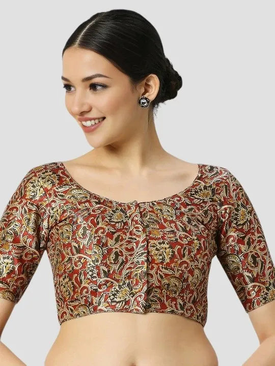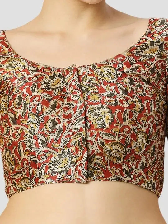 Elevate your wardrobe with our exquisite Bhagalpuri Silk Maroon Printed Blouse, a timeless fusion of tradition and elegance. Crafted from luxurious Bhagalpuri silk, renowned for its lustrous texture and durability, this blouse exudes sophistication. The vibrant maroon hue, adorned with intricate paisley motifs, adds a touch of opulence to any ensemble. The round neckline frames the collarbones gracefully, while the half sleeves offer a blend of comfort and style.